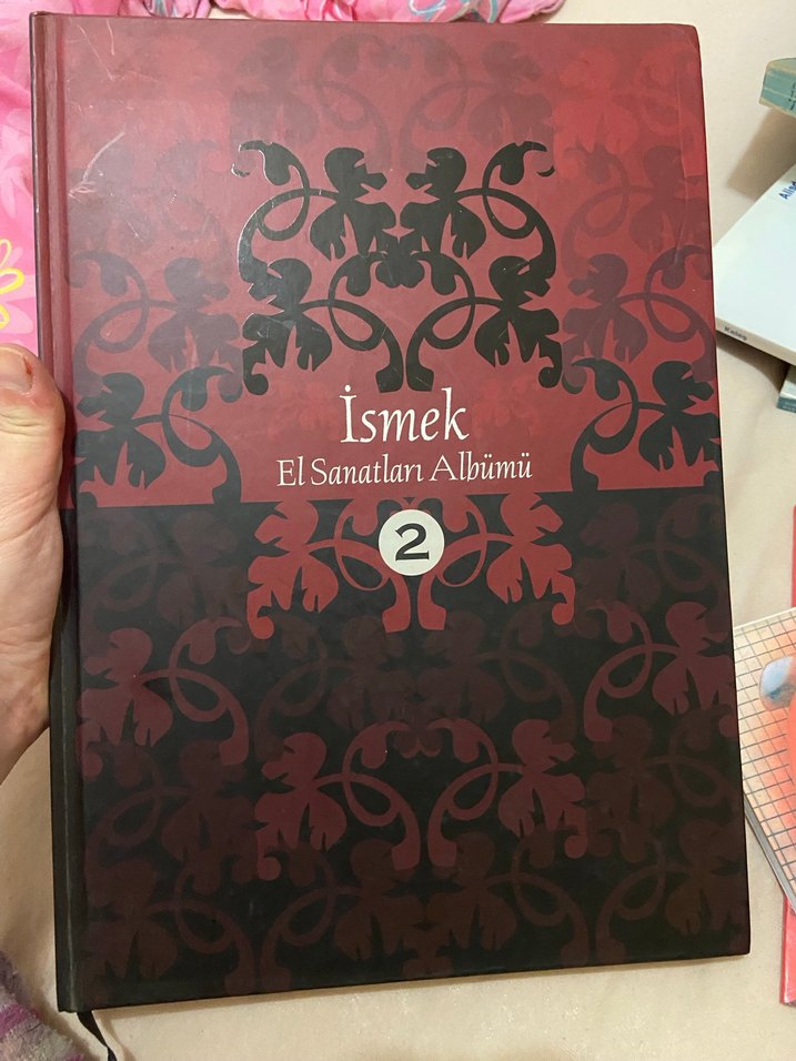 "İsmek El Sanatları Albümü 2" adlı kitap, detaylı el sanatları içeriği sunar. Sert kapaklı ve süslü desenli bir tasarıma sahiptir.