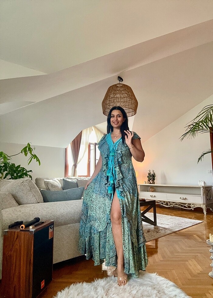 Ürünü Barcelona’dan aldım ipek çok özel tasarım dantel detaylı dilerseniz yelek gibi önü açık giyebileceğiniz dilerseniz görselde benim kullandığım gibi kancalarını takıp iplerini bağlayarak giyebileceğiniz her bedene uygun inanılmaz bir elbise. Bu elbisede arge çalışmaları için alındı bir kere dahi giyilmedi. Dilerseniz beline kemer takabilirsiniz. Dilerseniz plajda bikini üzerine önünü açık giyinebilirsiniz. Yaz için her alanda kullanılacak muhteşem bir ürün. Dolabımdaki diğer ürünlere bakmayı unutmayın açıklamaları okumayı unutmayın.