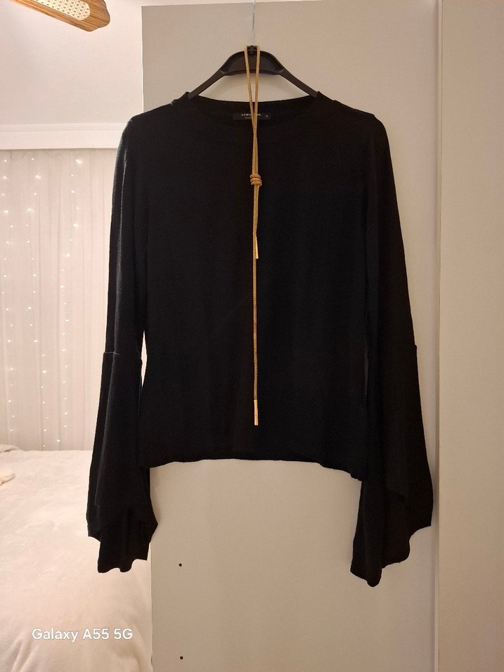 Siyah İspanyol kollu rahat bluz