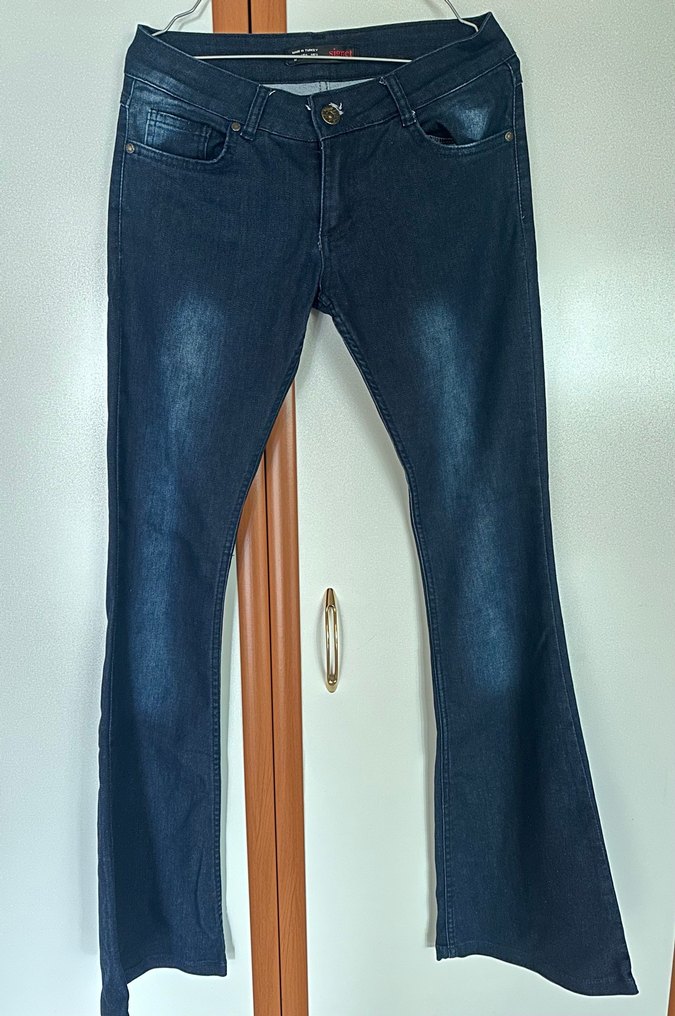 MARKA TEMSİLİDİR. İspanyol paça lacivert jean pantolon. Kumaşı likralıdır.