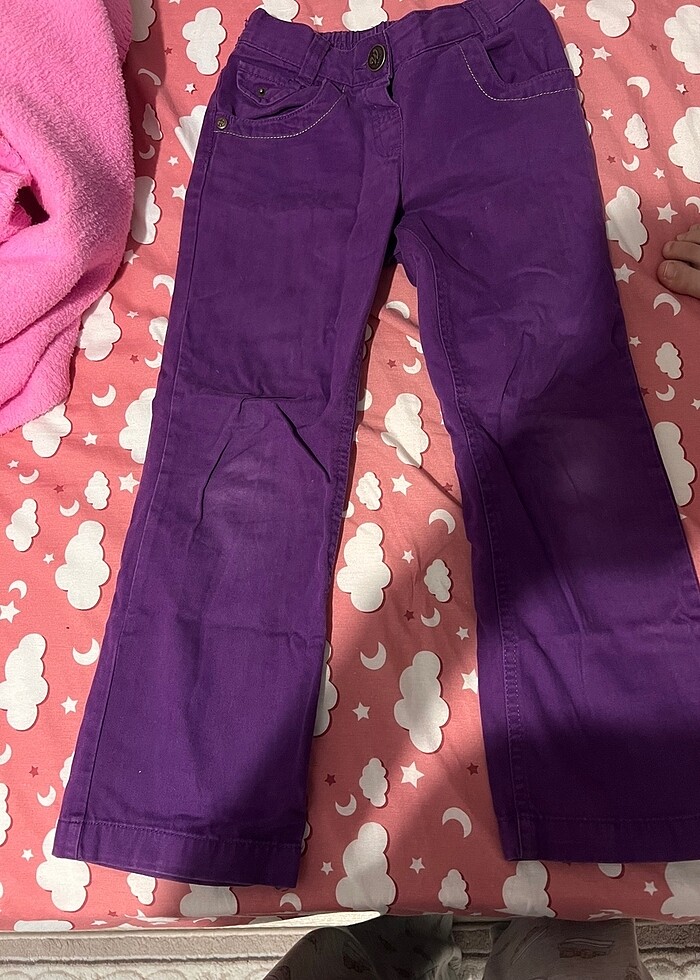 5-6-7 yaşlarına uygundur. Bir dizinde hafif solma var fotoğrafta belli oluyor. onun dışında bir sorunu yoktur