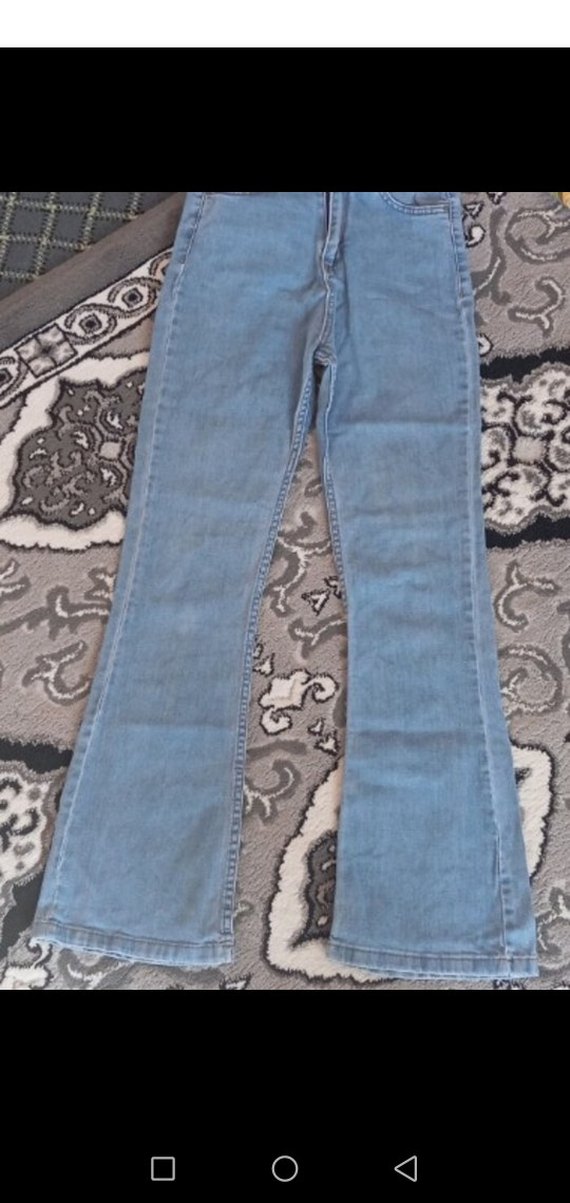 Geniş kesim, bağcıklı detaylı mavi denim pantolon. Hafif batik desenli, midi boy, günlük ve sokak stiline uygun.
