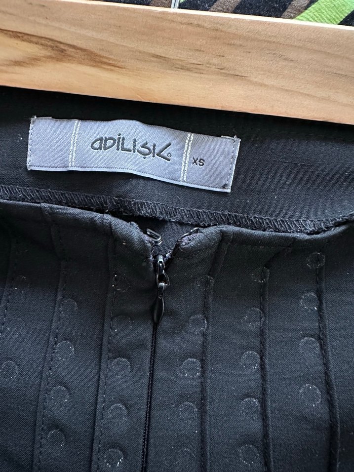 Bol paça pantolon. Üzerinde metal boncuklar vardı düştüler. Adilışık marka. Üstte çok şık duruyor.