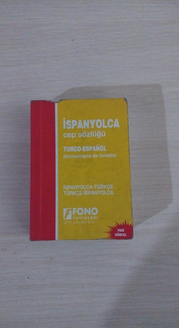 Fono Yayınları tarafından hazırlanan İspanyolca-Türkçe ve Türkçe-İspanyolca cep sözlüğü, güncel baskı. Resimde görülen kararmalar vardır.