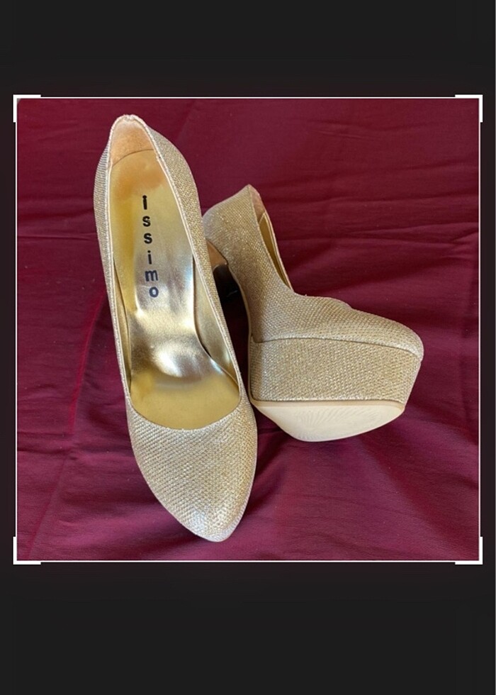 Urun hic kullanilmadi. deneme bile yapilmadi .Tarakli ayak sahibi iseniz dar gelebilir.oldukca sık zarif ÖZEL gunlerin favorisi olacak bir ayakkabi topuk boyu 12 platformla 14 u buluyor.#İssimoayakkabi #Simli abiye #Simli platform abiye renk krem simli gold isiltili