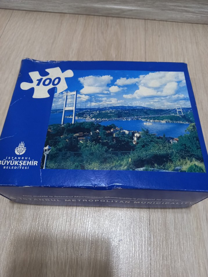 İstanbul Boğazı ve köprüsünü gösteren 100 parçalık renkli puzzle. İstanbul Büyükşehir Belediyesi tarafından üretildi.