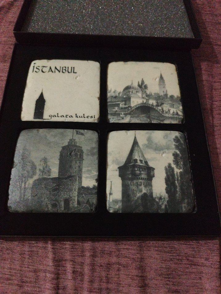 İstanbul Galata Kulesi Temalı Taş Bardak Altlıkları