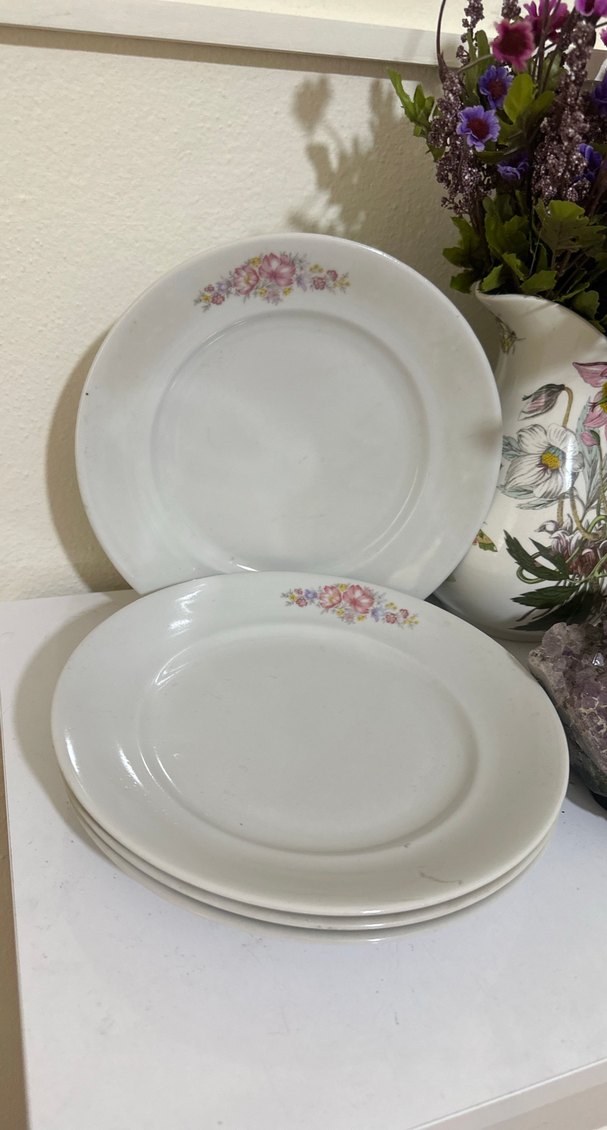 Çiçek desenli beyaz porselen tabaklar, yemek servisi için uygundur. Hafif ve şık, masanıza klasik bir dokunuş katar. ️ İstanbul porselen damgalı 23 santim çapında dört adet