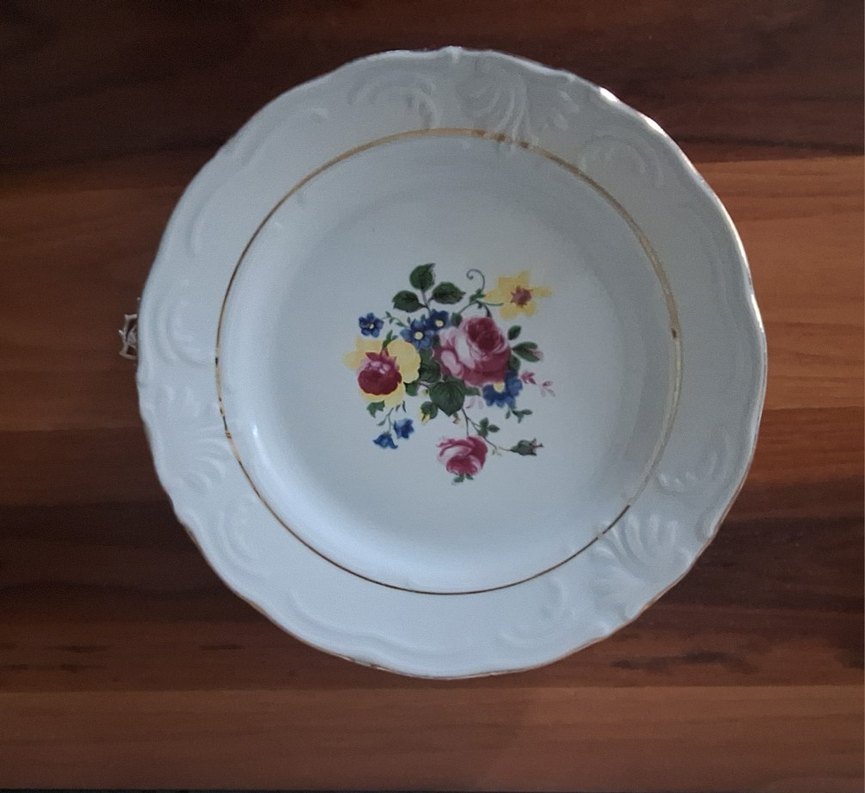İstanbul Porselen çiçek desenli kenarları altın yaldızlı ve gofreli tabak .Çapı 23 cm dir atığı kırığı çatlağı yoktur.