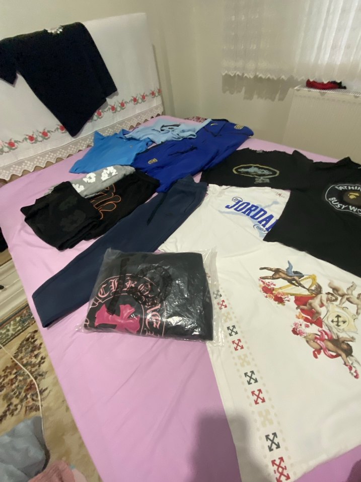 Nike tech takımı ,şortlar Denim tears syna,Jordan Bape off whıte tişörtler chrome hearts kazak