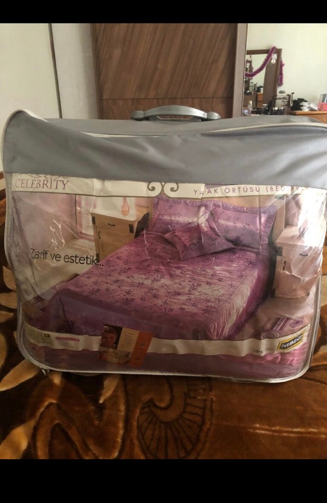 İstikbal marka yatak örtüsü zarif ve estetik bir tasarıma sahiptir. Kolay saklama için gri taşıma çantasıyla birlikte gelir. Çift kişiliktir. İç kısmında küçük bir bölümünde sandık lekesi vardır. (Fotoğrafta görüldüğü gibi)