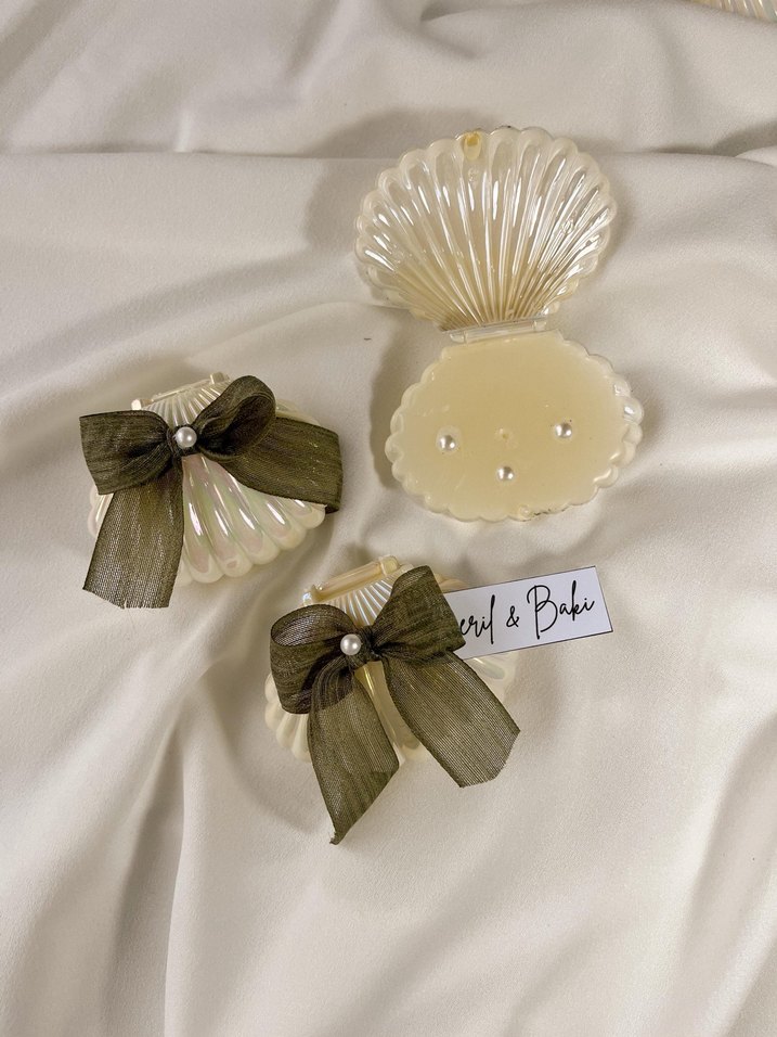 Parlak bej renkli deniz kabuğu şeklinde mum ve tutucu seti, dekoratif fiyonklar ve inci detaylarıyla zarif bir dokunuş sağlar.Özel günleriniz için harika bir hediyelik fiyonk detayı değiştirilebilir kutulu yada kutusuz tercih edebilirsiniz
