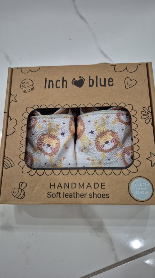 Bej renkte, aslan desenli deri erkek bebek ilk adım ayakkabısı. Lastikli,yumuşak ve el yapımı deri malzeme kullanılmış. Ürün ev icerisinde sayili kullanildi. Cok temiz ve defosuz. Beden 20-22 (large diye geciyor. kutu görselinde mevcut) Güncel fiyati 38 Euro,ben cok düsük bir fiyata satiyorum.