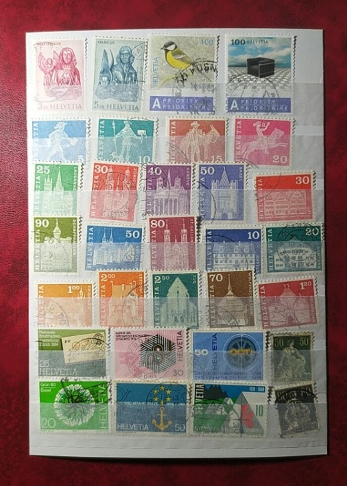 İsviçre ye ait 31 Adet Tematik - Klasik Pul Koleksiyonu. Kartela içinde gönderilecektir. Kolleksiyonluk ürün olup adet değil, bütün lotun fiyatıdır. Pullar damgalı ve çok temizdir.