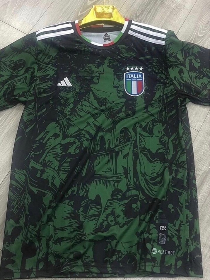 Yeşil baskılı, kısa kollu, yuvarlak yakalı, sentetik kumaştan yapılmış, drapeli ve dar kesim İtalya formasıdır. Outdoor spor stiline uygundur.