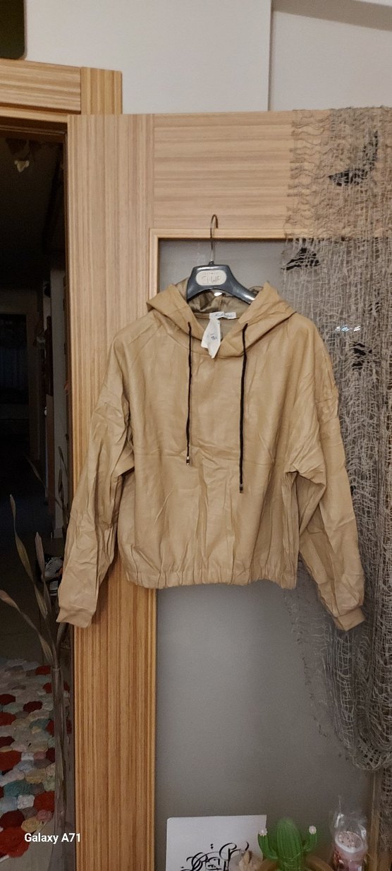 Etiketli ürün.İtalyan tasarımı.İçi saten gibi.Kapüşonlu.Beli ve kolları lastikli.Kırışık model.Beden etiketi yok,38/40 bedenlere uygun.