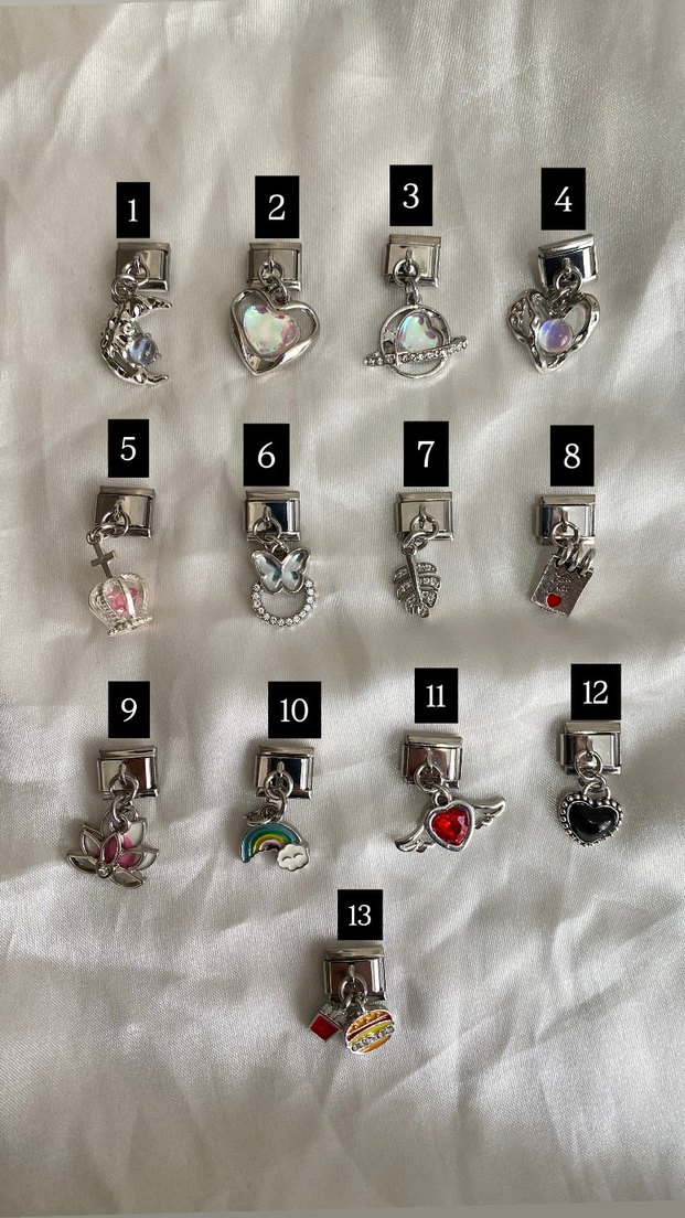 Farklı zor bulabileceğiniz İtalyan Charmlar. Almayı düşündüğünüz ürünlerin numaraları ile ayrı bir ilan açtırınız. Adet fiyatıdır. ❤️ 5 üzeri çoklu ürün alımında indirim yapılmaktadır. ❤️ Kapattığım işletmemin ürünleri hiç kullanılmadılar. Paslanmaz Çelik oldukları için kararma kopma gibi problemler yaşanmamaktadır. 2 yıl önce kurdum işletmemi bir heyecanla kendim de kullandım, 2 yıldır hiç kararmadan kullanıyorum charmlarımı ve bilekliklerimi. ❤️ Şimdiden iyi günlerde kullanın yüzünüze mutluluk getirsinler. ❤️