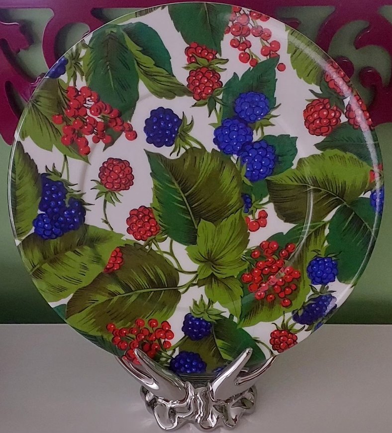 Canlı meyve ve yaprak desenli, renkli bir tepsi sunumluk kusursuz sıfır üründür
