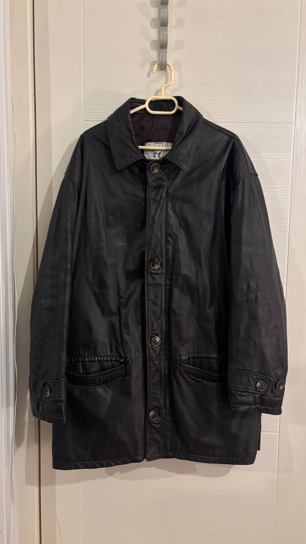 İtalyan Deri Vintage Düğmeli Siyah Deri Erkek Kaban