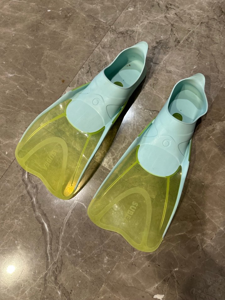 İtalyadan alındı .Pastel mavi ve yeşil yüzgeçli erkek su ayakkabısı, kauçuk malzeme ve Velcro bantlıdır, plaj için uygundur. 34-35 numaraya uygun