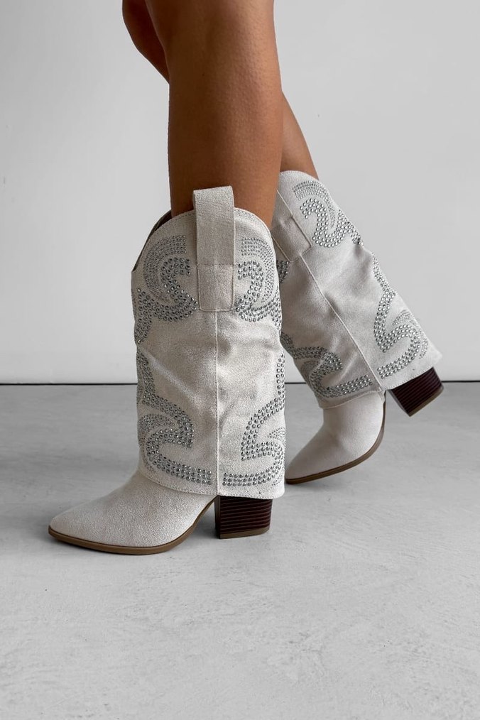 İtalya’dan satın alınmış, orijinal İtalyan üretimi Kovboy (Western) stilinde, taş işlemeli özel tasarım bottur. • Durum: Sıfır, hiç giyilmedi • Numara: 37 • Model: Kovboy / Western • Malzeme: %100 gerçek süet deri • Renk: Krem – Açık bej • Topuk: Orta topuk (rahat ve dengeli) • Detay: Fabrikasyon taş işleme – dökülme yok • Menşei: İtalya #kovboybot #westernçizme #italyanbot #gerceksuet #deribot #taslicizme #37numara #sıfırürün #ürün Ayakta duruşu çok şık, hem elbise hem jean ile rahatça kombinlenebilen zamansız bir kovboy modeli. ve İtalyan mağaza ürünü olduğu için seri üretim değildir.