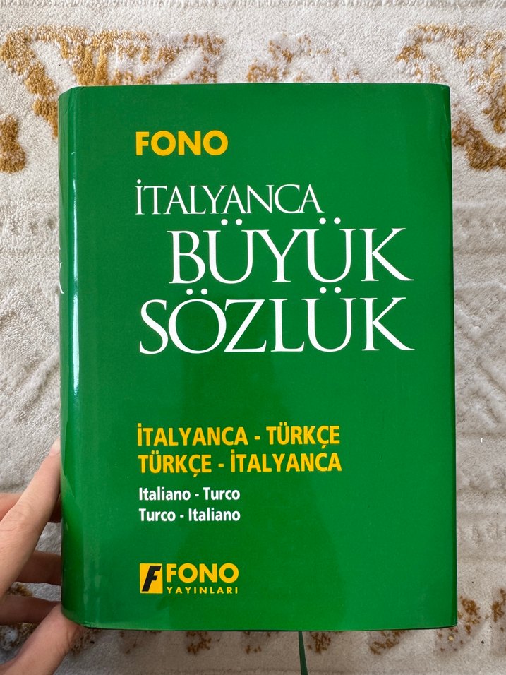 Fono yayınevinden İtalyanca-Türkçe ve Türkçe-İtalyanca çeviriler içeren büyük sözlük. Sıfır sözlük aslında çok büyük olduğu için kullanamadım. Ve de hiçbir kusuru yoktu taaki fotoğrafınu çekmek için elime aldım elimden kaydı ikiye ayrıldı son fotoya ekledim