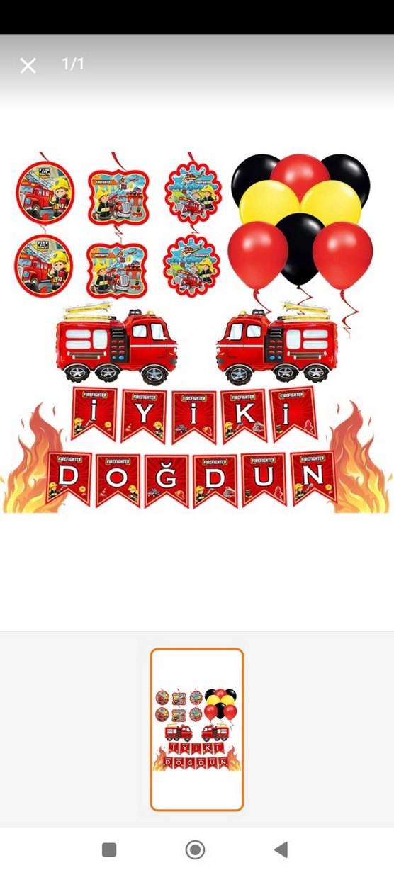 İtfaiye figürlü balonlar, "İYİKİ DOĞDUN" yazılı pankart ve kırmızı, siyah, sarı balonlardan oluşan renkli doğum günü parti seti.resimde görünen herşey dahildir büyük boy 3 rakamı da. hepsi sorunsuz 1 gün kullanıldı kaldırıldı.