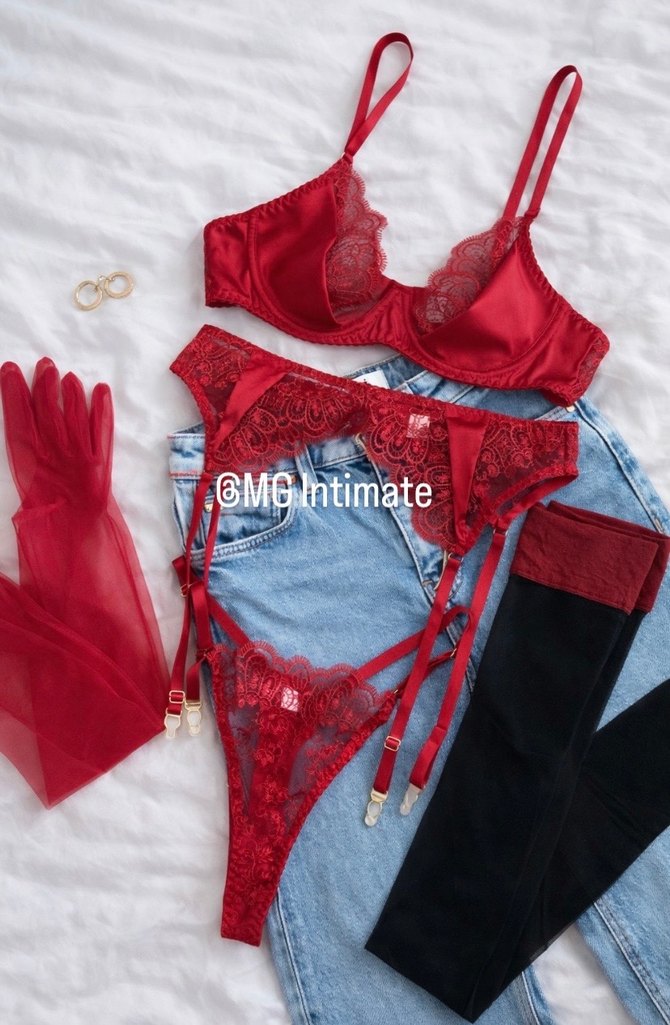 İthal premium üründür. Cesur dantel detayları ve vücudu kusursuz şekilde saran tasarımıyla bakışları üzerine çeken özel bir parça. Feminen hatları ön plana çıkaran bu takım, kendini güçlü, iddialı ve çekici hissetmek isteyenler için tasarlandı. • Baştan çıkarıcı transparan dantel • Ayarlanabilir askı ve jartiyer yapısı • Vücuda oturan, formu öne çıkaran kalıp • Tutkulu ve iddialı kırmızı renk Set İçeriği • Sütyen • Külot • Jartiyer kemeri • Eldiven ve Çorap Özel anlar, romantik sürprizler ve özgüvenini yükseltmek istediğin her an için ideal bir seçim. (S/M/L/XL) istenilen bedende ilan açılır ✨