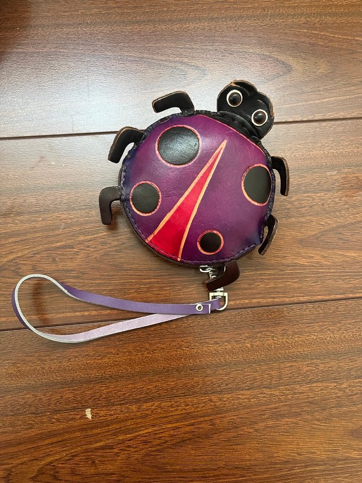İthal deri Mor Uğur Böceği Tasarımlı charm