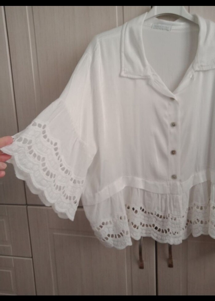 Aldım hiç giymedim. Sadece etiketi yok. Alınca görürsünüz zaten. Dökümlü çok şık gömlek. İsterseniz bluejean ile isterseniz şık bir altla kombinleyin. İki koltuk arası 60, uzunluk 55 cm