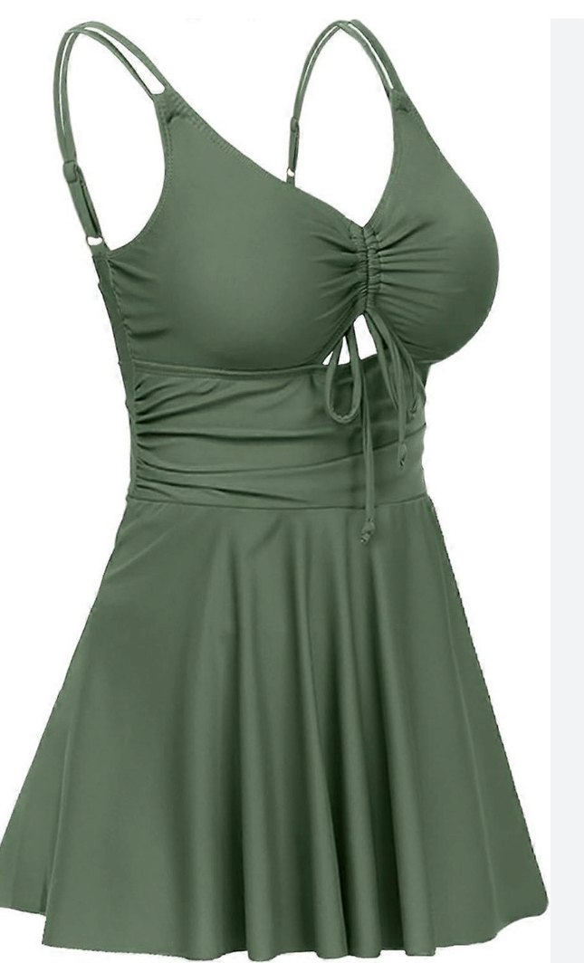 Yeşil renkli, ip askılı ve drapeli detaylara sahip, kısa mini Göğüs altı:40 cm. Karın kısmı:44 cm. Boy:58 cm ölçülerinde. Ürünün ölçülerini ve özelliklerini lütfen dikkate alın, iade ve iptal kabul edilmeyecektir. #mayo #bikini #deniz #plaj #kadınmayo #elbisemayo boy mayo. Bohem tarzı ve pastel tonuyla plaj için uygun. ️