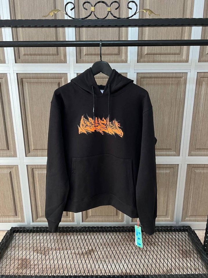 İthal Off White sıfır etiketli kendi paketinde Uzun kollu, kapüşonlu ve rahat kesimli siyah sweatshirt. Yumuşak ve sıcak kumaştan, önünde baskılı desen bulunur. Sokak stiline uygun, dış mekan kullanımı için ideal.