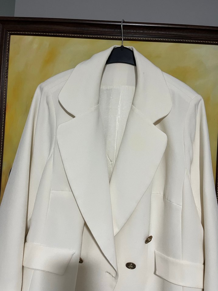 İthal özel dikim dügmeli kırık beyaz Uzun Kadın Blezır