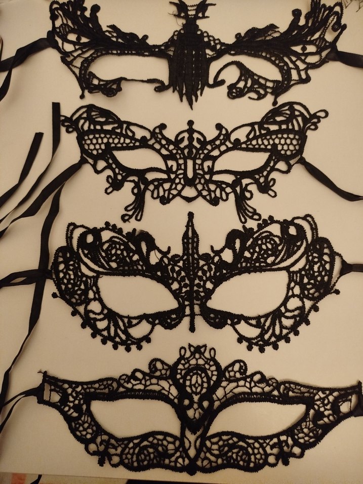 Kadınlar için gözleri kapatan, elastik bantlı siyah dantel maskeler. Karmaşık desenlere sahip, kostüm partileri için uygun. Ürünler ithaldir. Dört çeşittir. Adet fiyatı 150 tl'dir. Yeni ilan açtırınız.