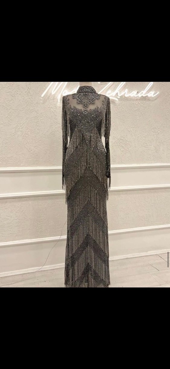 Boncuk işlemeli ve uzun kollu uzun gri abiye elbise,şık tarzıyla düğünlere uygundur ful taş işlemelidir. 36/38/40 beden uyumlu arkası fermuarlıdır ister açık ister kapalı kullanılabilir.kapalılar için içlik ve şalı da dahildir.✨