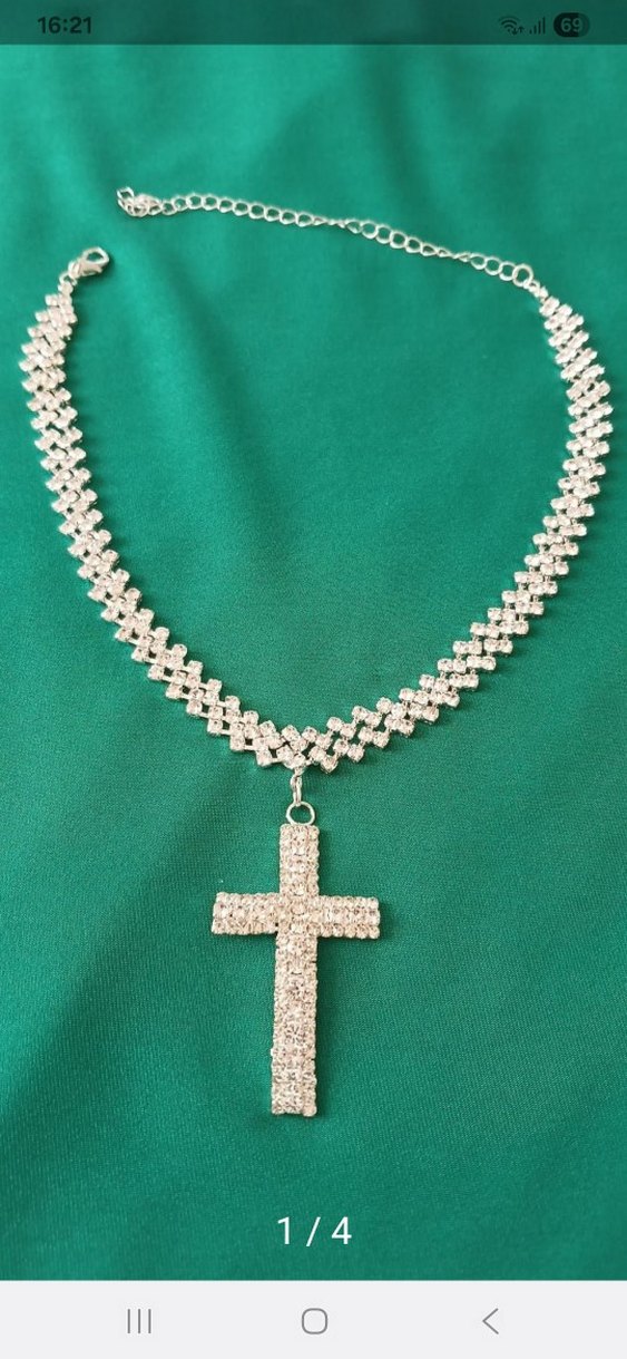 İthal zirkon taş kaplamal haçlı kolye boyu 35 + 7 cm kolye ucu 5 cm Antialerjiktir kutuda gönderilecektir