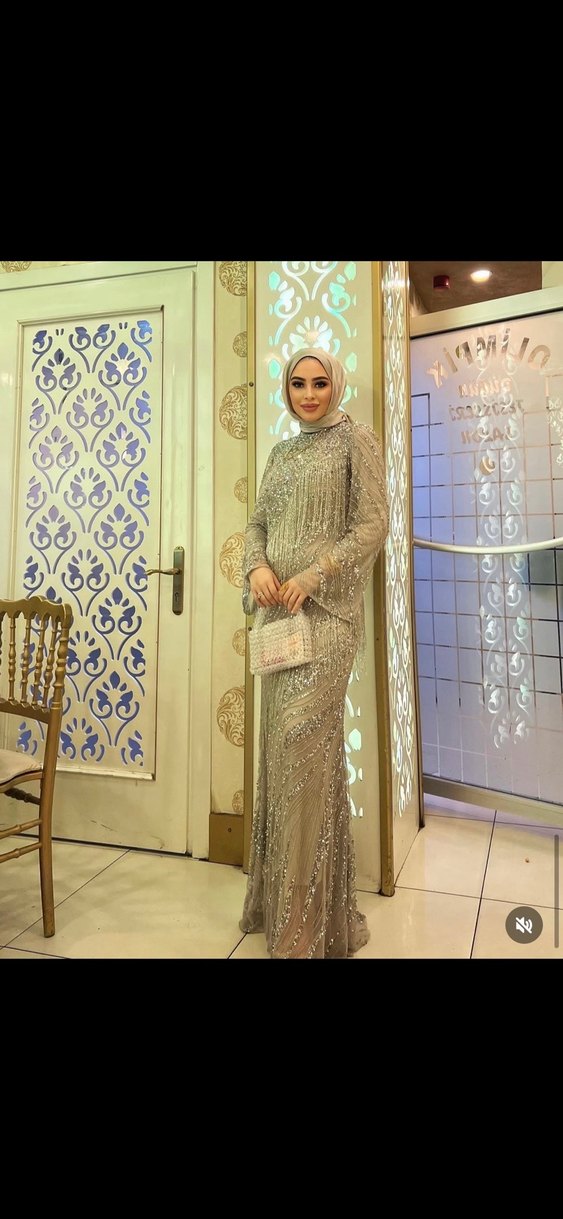 Gri renkte, uzun kollu ve yüksek yakalı,fit abiye elbisedir. Düğünler için uygundur 36/38/40 beden uyumludur arkası fermuarlıdır şal ve içlikle gönderilecektir.