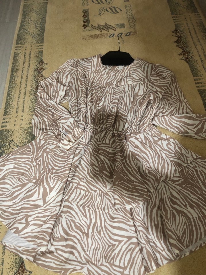 İthalZebra Desenli Uzun Kollu Mini elbise