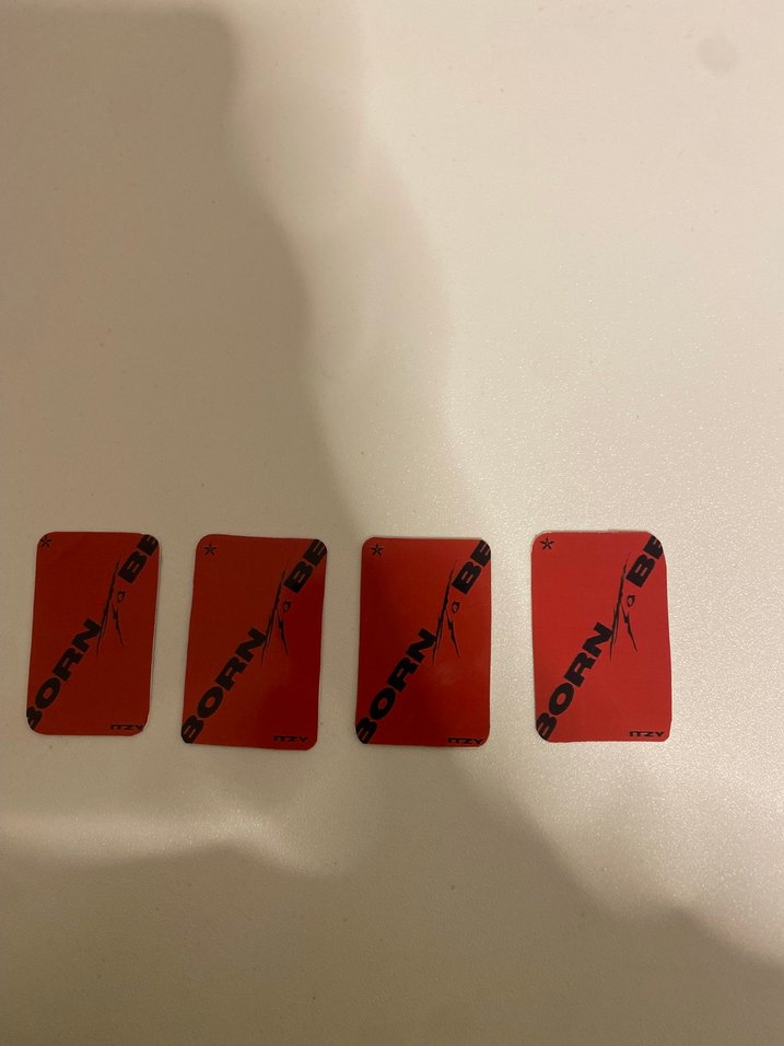 Üzerinde yazı bulunan koyu kırmızı foto kartlarından oluşan set