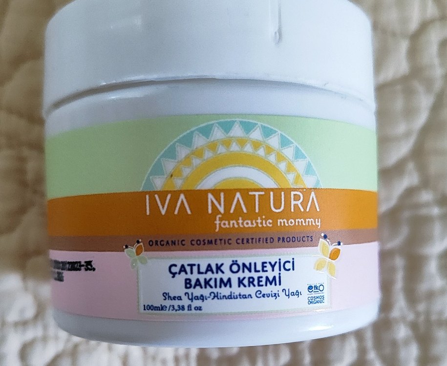 Iva Natura fantastic mommy çatlak önleyici bakım kremi, shea yağı ve hindistan cevizi yağı içerir. Organik sertifikalı üründür.