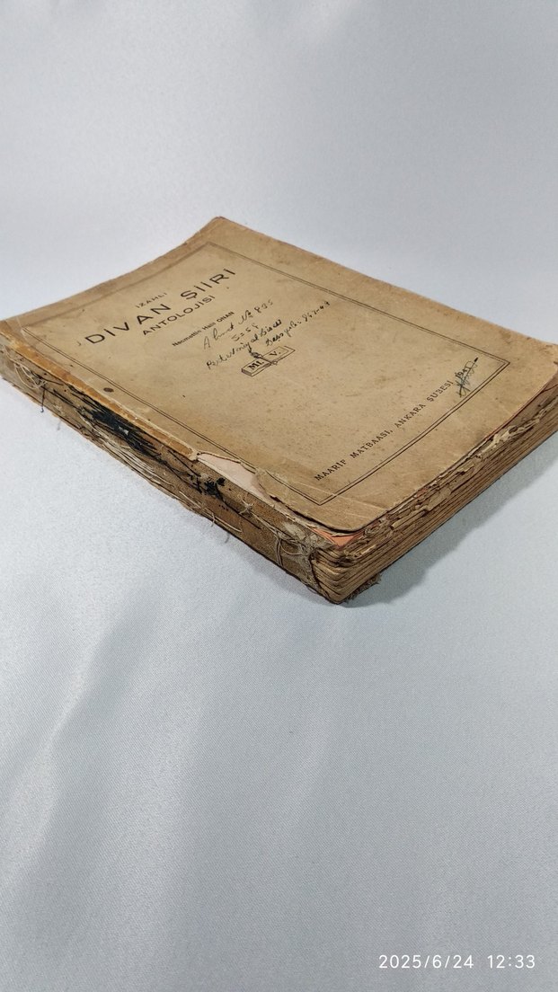 Yaşlanmış, yıpranmış Divan şiiri antolojisi. Kitabın sırtı hassas ve sayfaları sararmış. Agah Sırrı Levend / Kanaat kitabevi / 6. baskı / 1941.. / SAHAFLIK kitap..