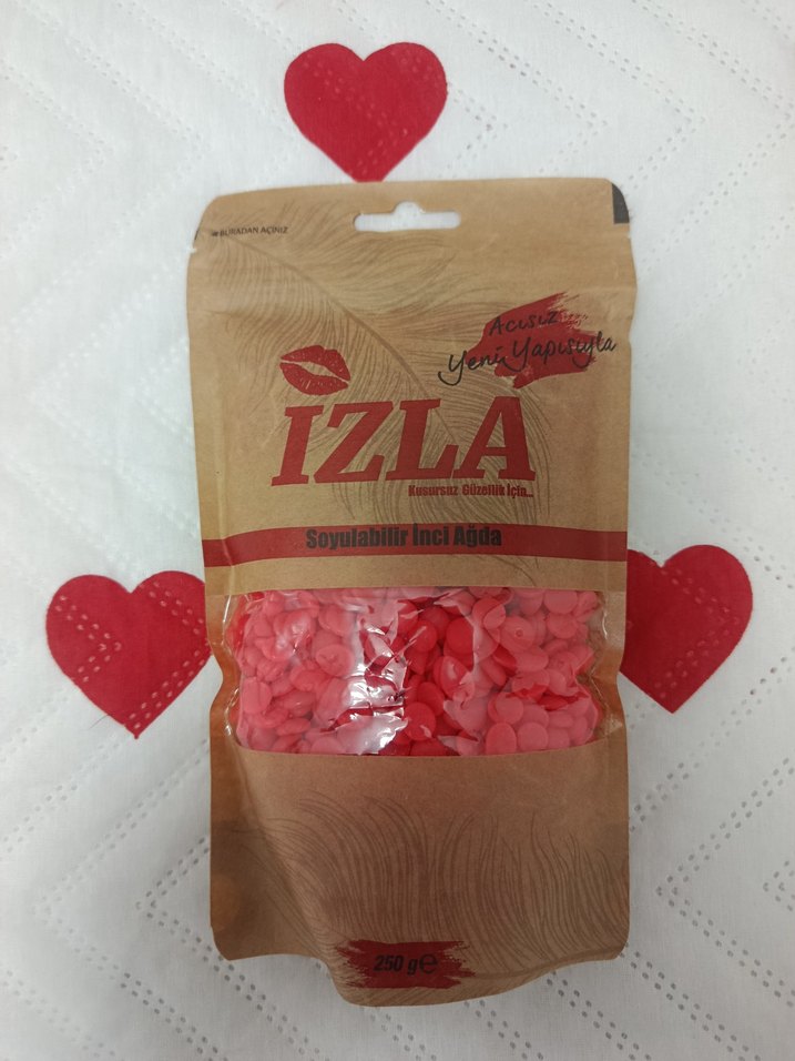 Izla soyulabilir inci ağda, 250g pembe boncuklar halinde, kolay tüy alma için.