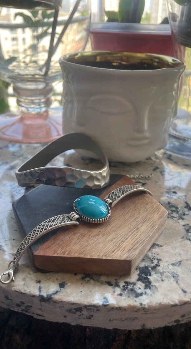 canlı turkuaz taşlı ve dovmeli detaylı 2 bileklik. İkisi için fiyat 200, teki için 75TLdir.