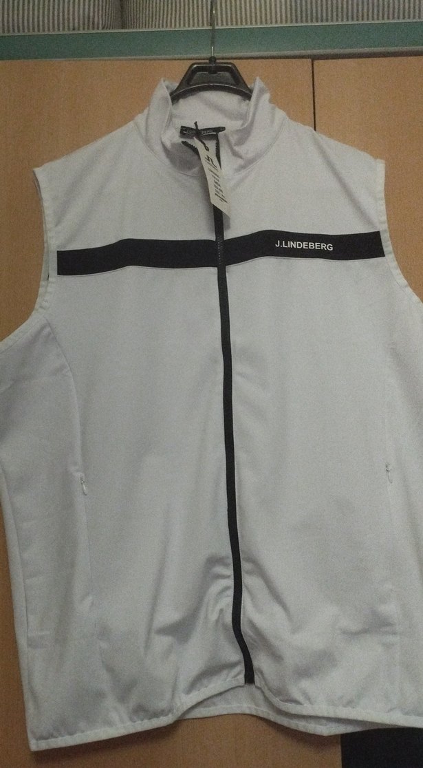J.Lindeberg markalı, beyaz renkte fermuarlı, kolsuz erkek yelek. Dar kesimi ve yuvarlak yaka detayıyla spor ve günlük giyime uygundur.