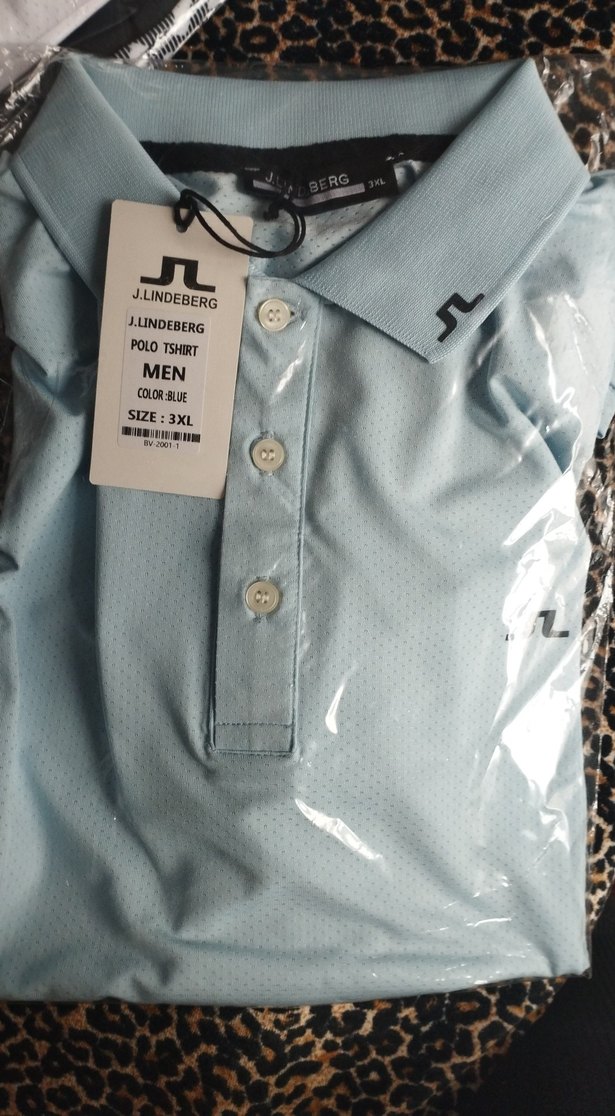 J.Lindeberg marka, mavi renk, kısa kollu, düğmeli yakalı, sentetik kumaş erkek polo tişört. 3XL beden, sportif ve şık görünüm sunar.