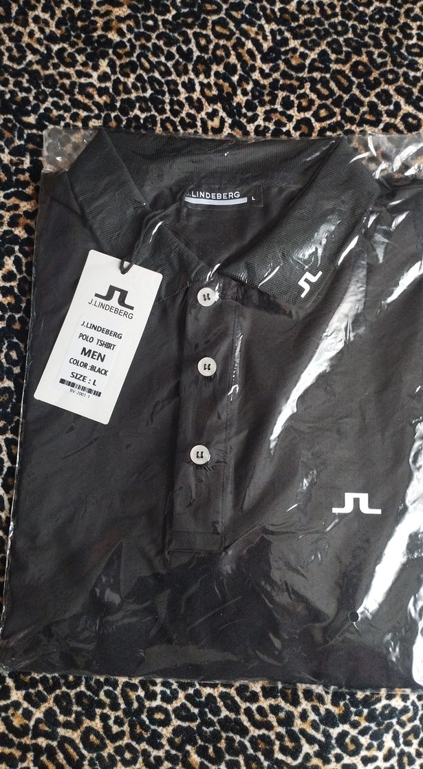 J.Lindeberg marka, düğmeli ve yakalı, siyah erkek polo tişört. Kısa kollu, baskılı logo detaylı, günlük kullanıma uygun, dar kesim.