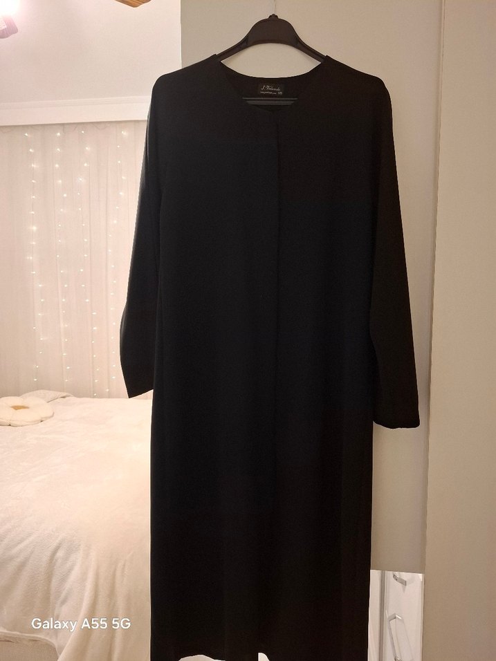 Siyah uzun kollu, yuvarlak yakalı, ferace. Yumuşak ve sıcak dokulu kumaştan, çok güzel kumaşı rahat kesim.
