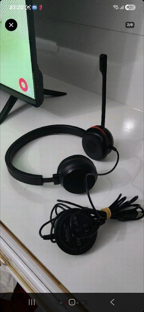 Siyah kablolu mikrofonlu kulaklık, ayarlanabilir kafa bandı ile rahat kullanım sağlar. Jabra marka