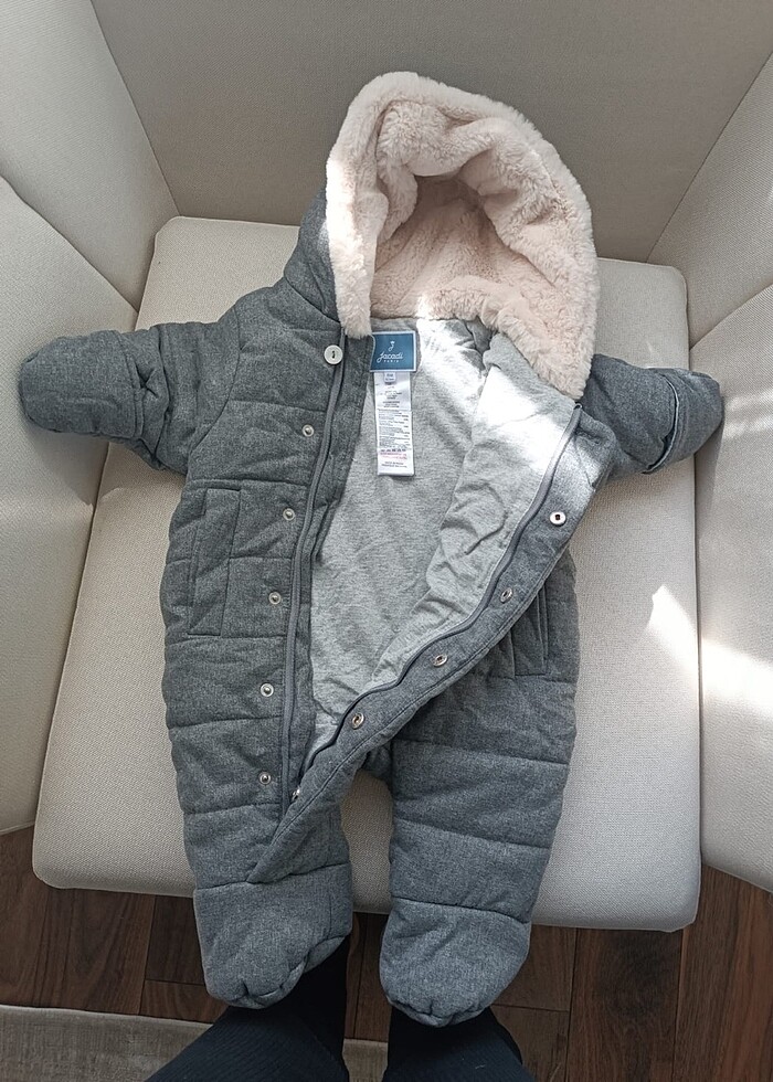 Oğlum sadece 2 kere giydi. Tertemiz duruyor. Unisex ürün. 6 aylığa kadar kullanılır