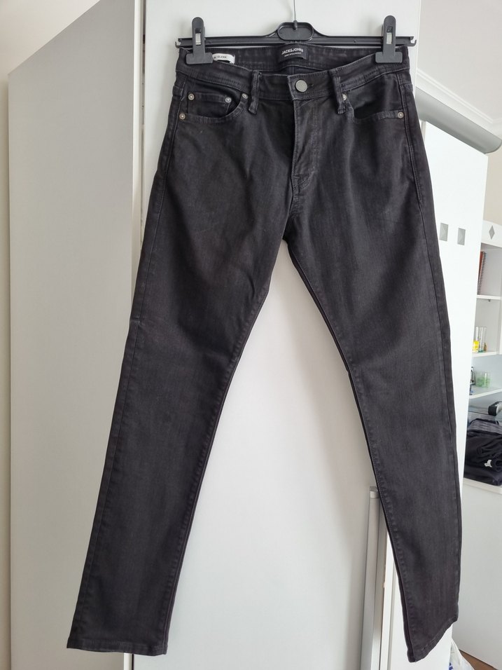 Jack & Jones Jeans Intelligence serisinden Glenn slim fit siyah jean. • Beden: 29/30 • Kalıp: Slim (dar paça) • Renk: Siyah • %98 pamuk, %2 elastan • Esnek ve rahat kumaş Temiz kullanılmıştır, sorunsuzdur. Günlük ve şehir stili kombinler için idealdir.